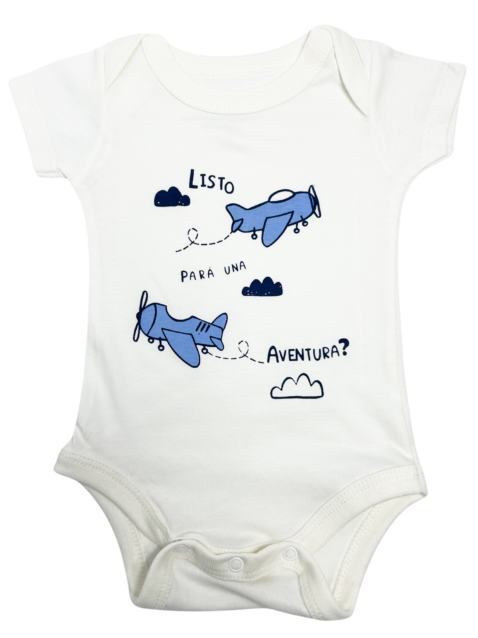 Este body en color crudo invita a la aventura con un estampado de aviones en tonos de azul y detalles de nubes, creando un diseño encantador y divertido. Confeccionado en jersey 100% algodón, es suave y delicado para la piel de tu bebé. Sus broches inferiores facilitan el cambio, ofreciendo practicidad sin sacrificar estilo.
