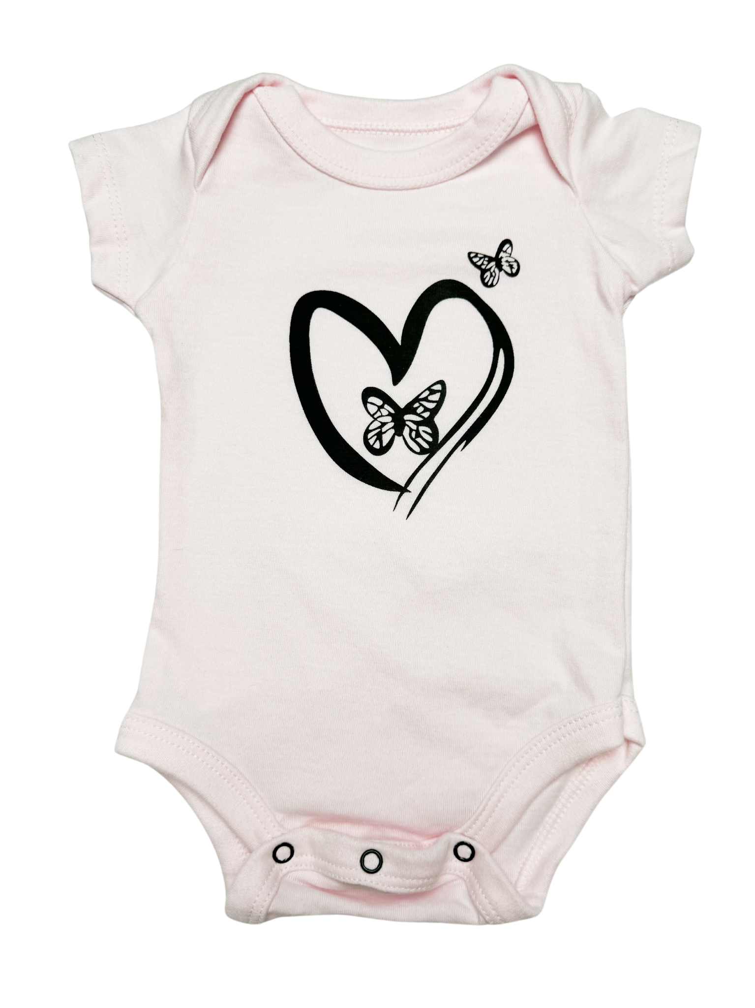 Dulzura en cada detalle 💕🦋. Este body presenta un diseño único de un corazón estilizado acompañado de delicadas mariposas en color negro, ideal para un look sofisticado y encantador.