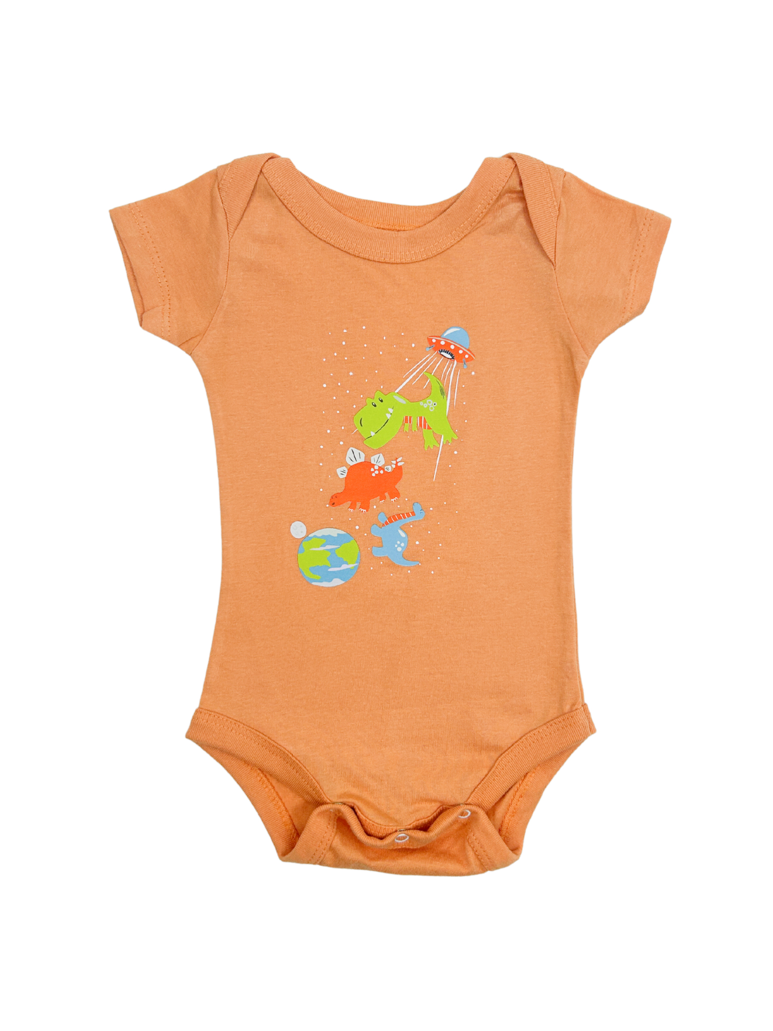 🦕 ¡Dinosaurios en el espacio! 🚀 Este body es perfecto para los pequeños exploradores. Un diseño lleno de imaginación con dinos siendo «abducidos» por ovnis, ¡una combinación fuera de este mundo!
