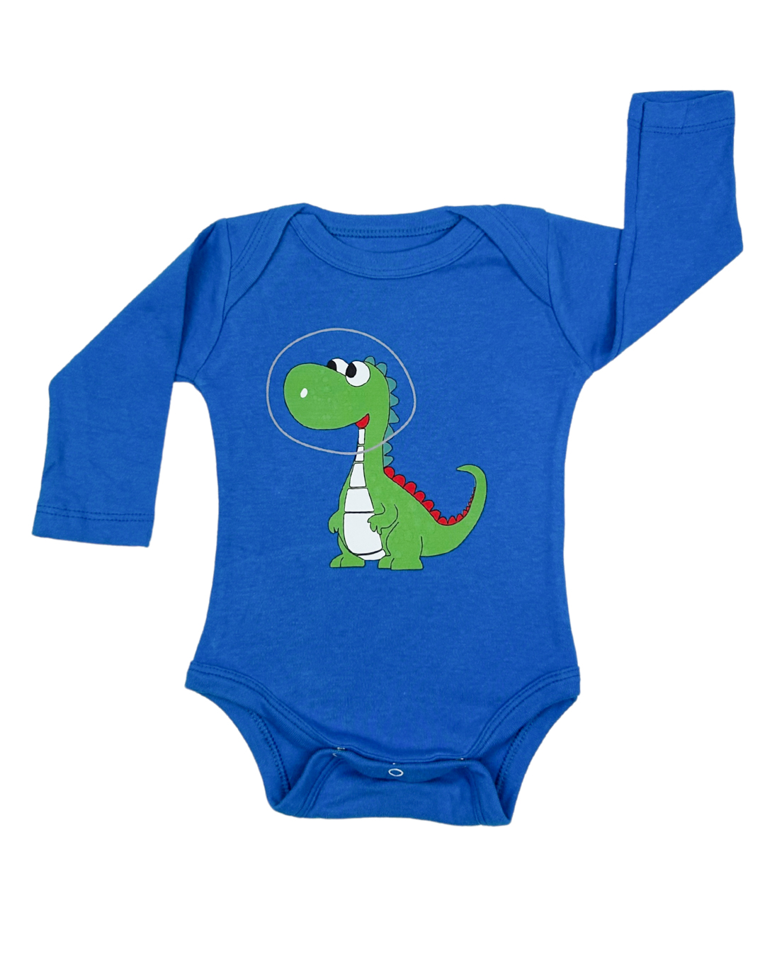 ¡Prepárense para el despegue! Este body azul con estampa de dinosaurio astronauta es perfecto para los peques con espíritu curioso y aventurero 🦖🌌