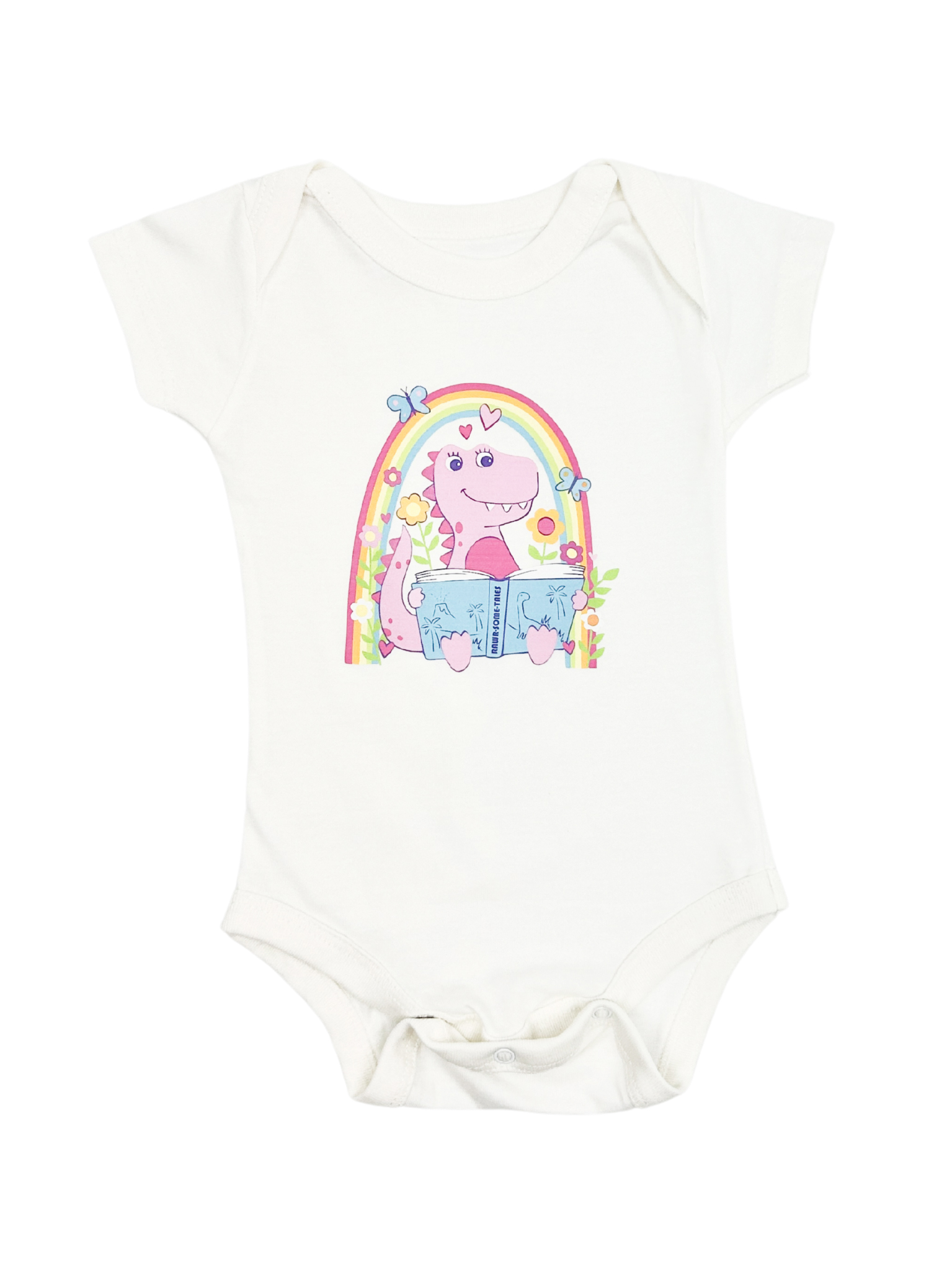 📚 ¡Una pequeña exploradora jurásica! 🦖✨ Este body es ideal para bebés que aman descubrir nuevas historias. Con su tierno diseño de dinosaurio rosa, arcoíris y flores, es perfecto para darle un toque especial a su ropita.