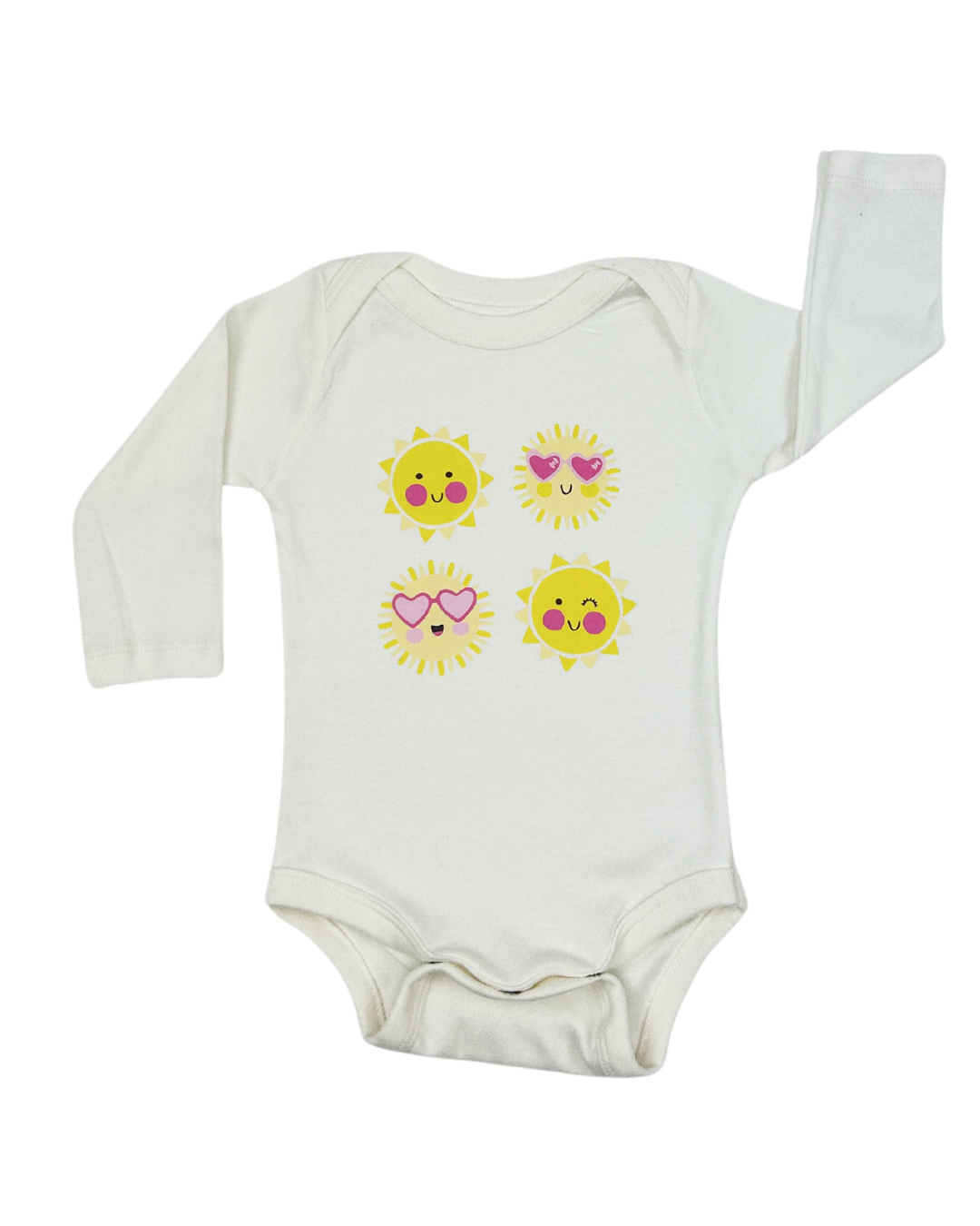 Este body encantador reúne cuatro soles llenos de carita y alegría, con lentes, guiños y sonrisas que contagian buen humor. Ideal para peques luminosos que llenan cada rincón con ternura.