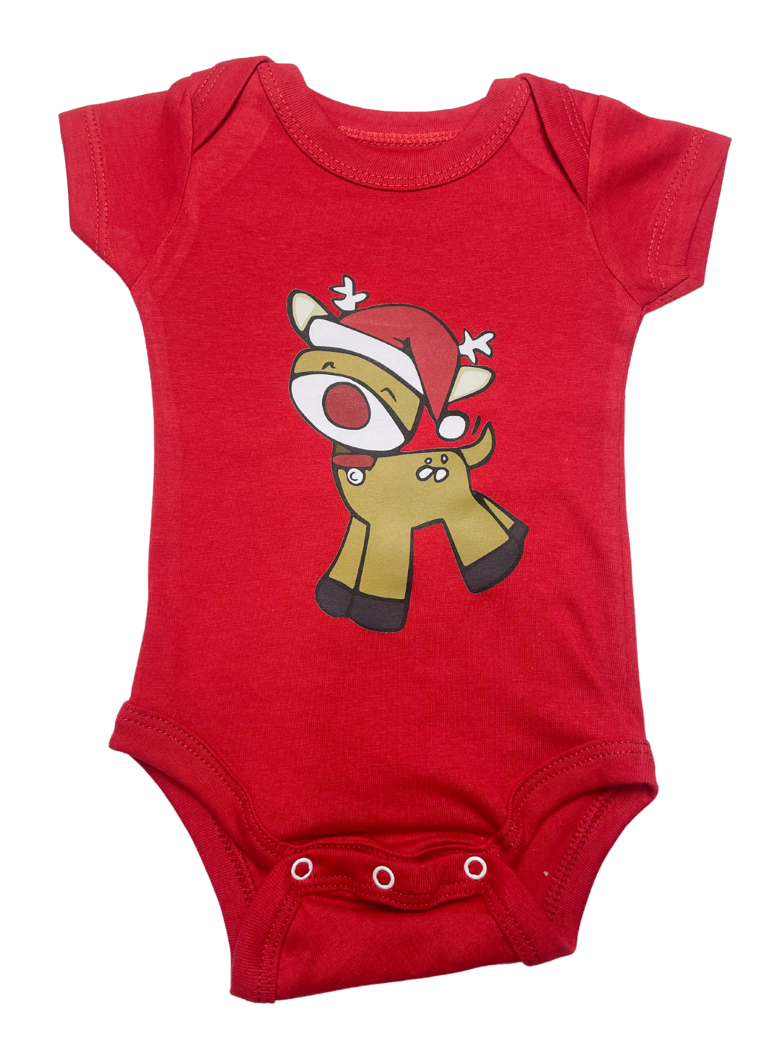 ¡El espíritu navideño está aquí con este adorable body de reno! 🦌 Con un diseño alegre y colorido que muestra a un reno con gorro de Santa, este body es perfecto para la temporada de fiestas.