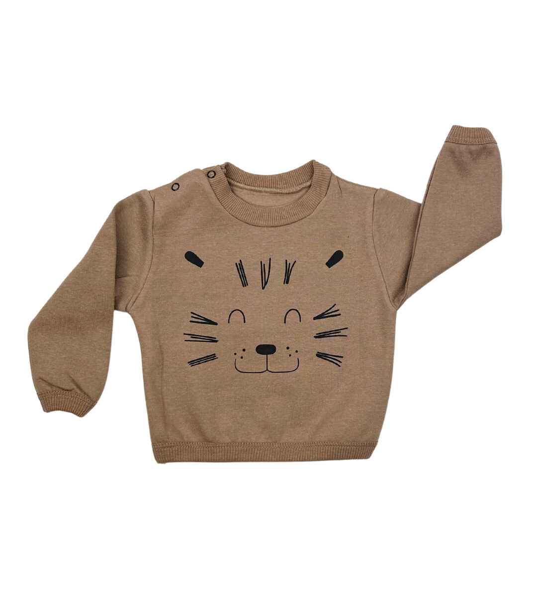Un clásico adorable para los más peques. Este buzo marrón con estampa de león en negro es ideal para acompañar sus días con ternura y comodidad. Tiene dos botones en el hombro que facilitan el cambio y está confeccionado en algodón suavecito, perfecto para abrigar sin incomodar. Un diseño simple y simpático que va con todo.