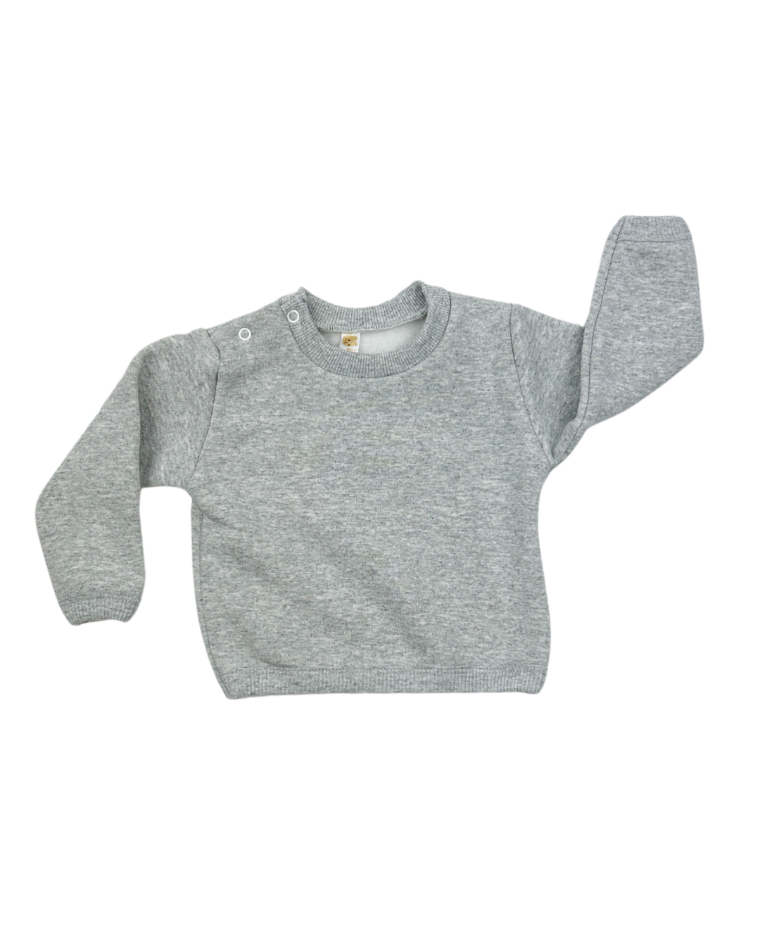 El clásico que nunca falla. Este buzo gris melange es suavecito, cómodo y súper versátil para combinar con todo. Tiene dos botones en el hombro para un cambio fácil y rápido. Ideal para acompañar a los más peques en sus aventuras de cada día.