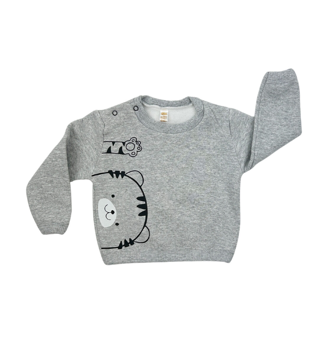 ¡Un diseño que enamora! Este buzo de frisa suave y abrigada trae al protagonista más tierno: un tigre curioso que asoma desde el costado con una sonrisa irresistible. Con estampa en tonos neutros que combinan con todo, y dos prácticos botones en el hombro para facilitar el cambio. Ideal para usar todos los días y arrancar sonrisas. 🐾