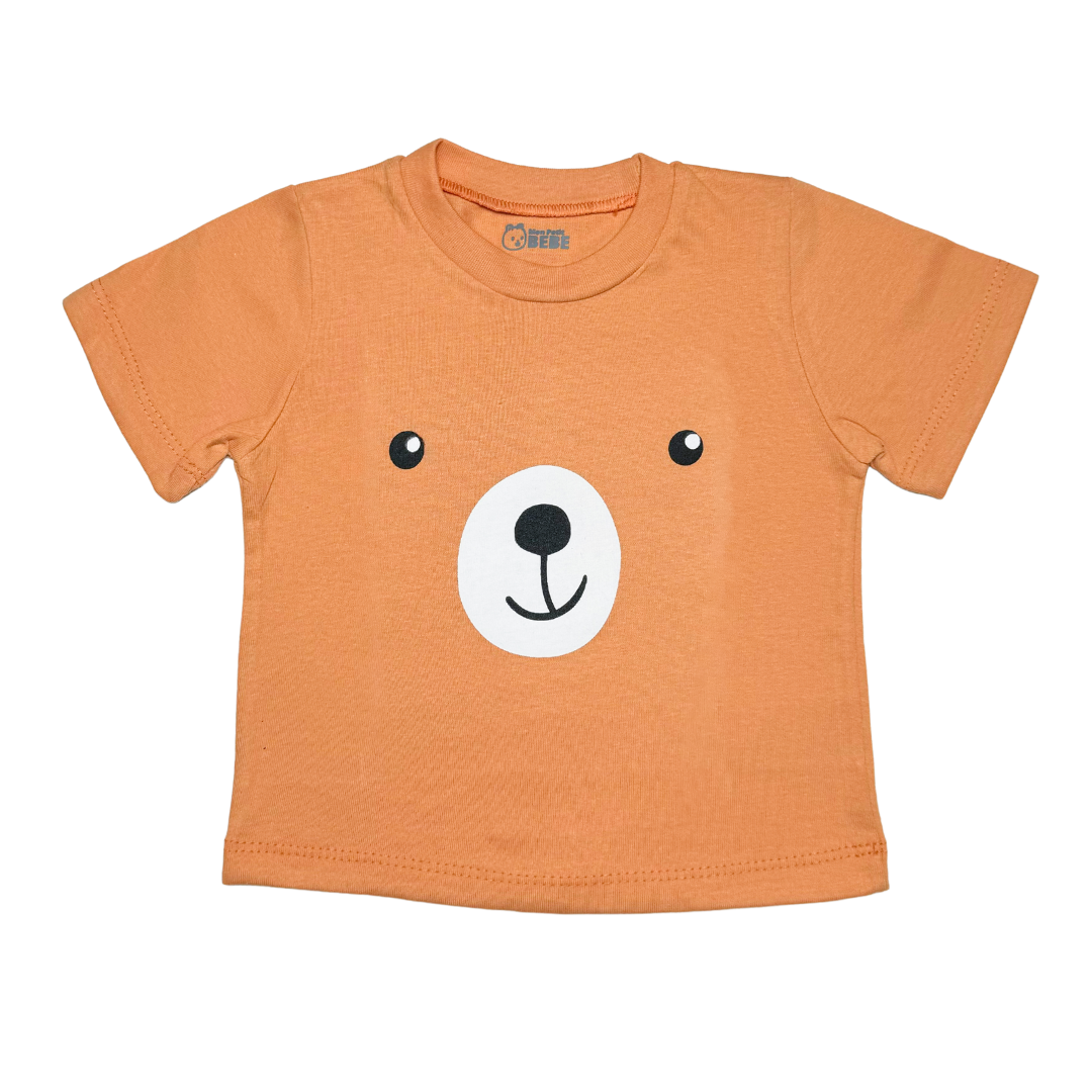 ¡Dulzura en cada detalle! 🐻 Esta remera presenta una encantadora carita de osito que hará que tu peque luzca adorable en cualquier ocasión. Confeccionada en jersey suave, es cómoda y perfecta para acompañar los días de juego y aventura.