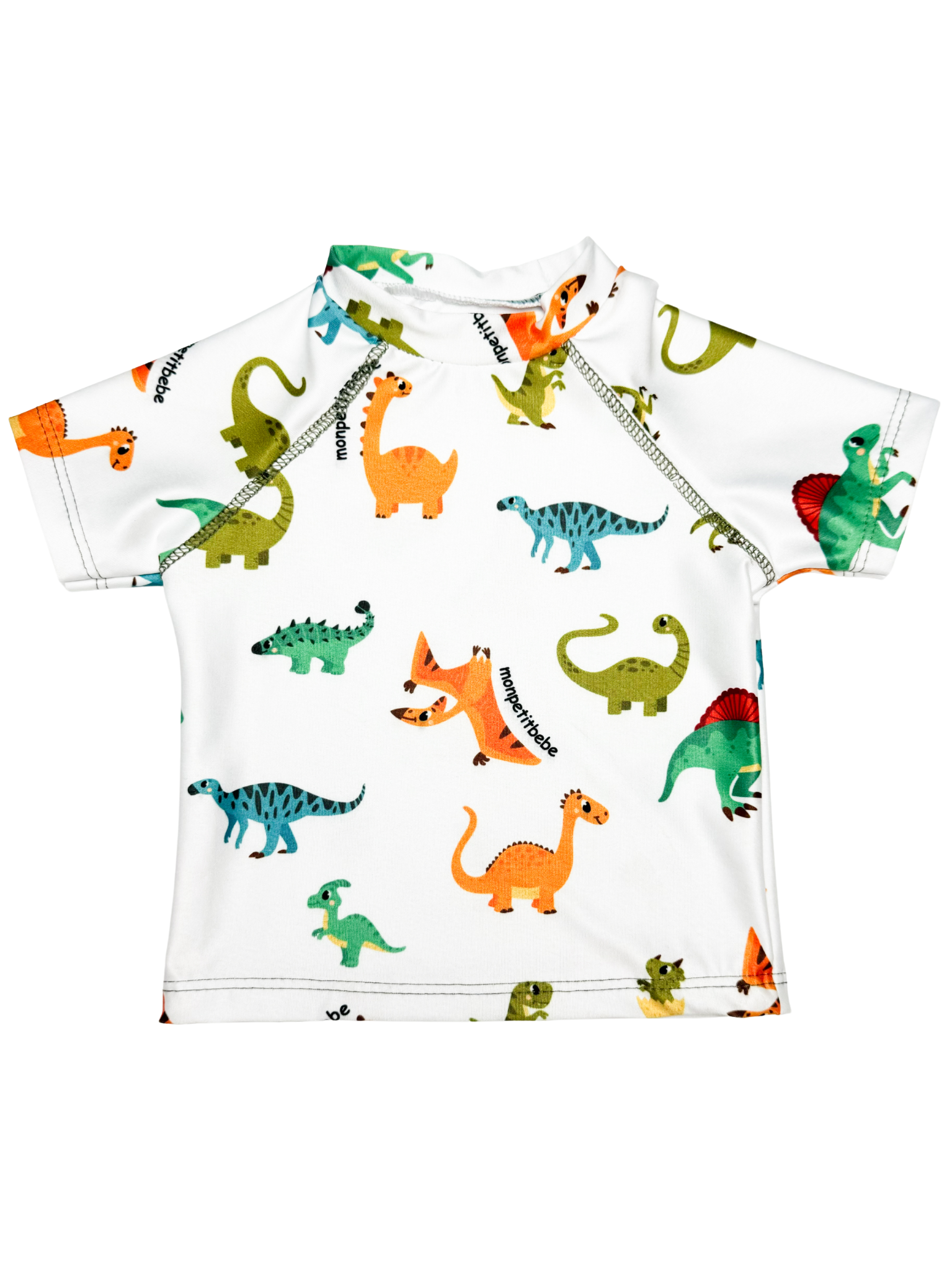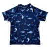 Esta remera de baño de manga corta es ideal para los pequeños aventureros. Con un divertido estampado de dinosaurios en colores vibrantes, es perfecta para disfrutar de días de playa o piscina.