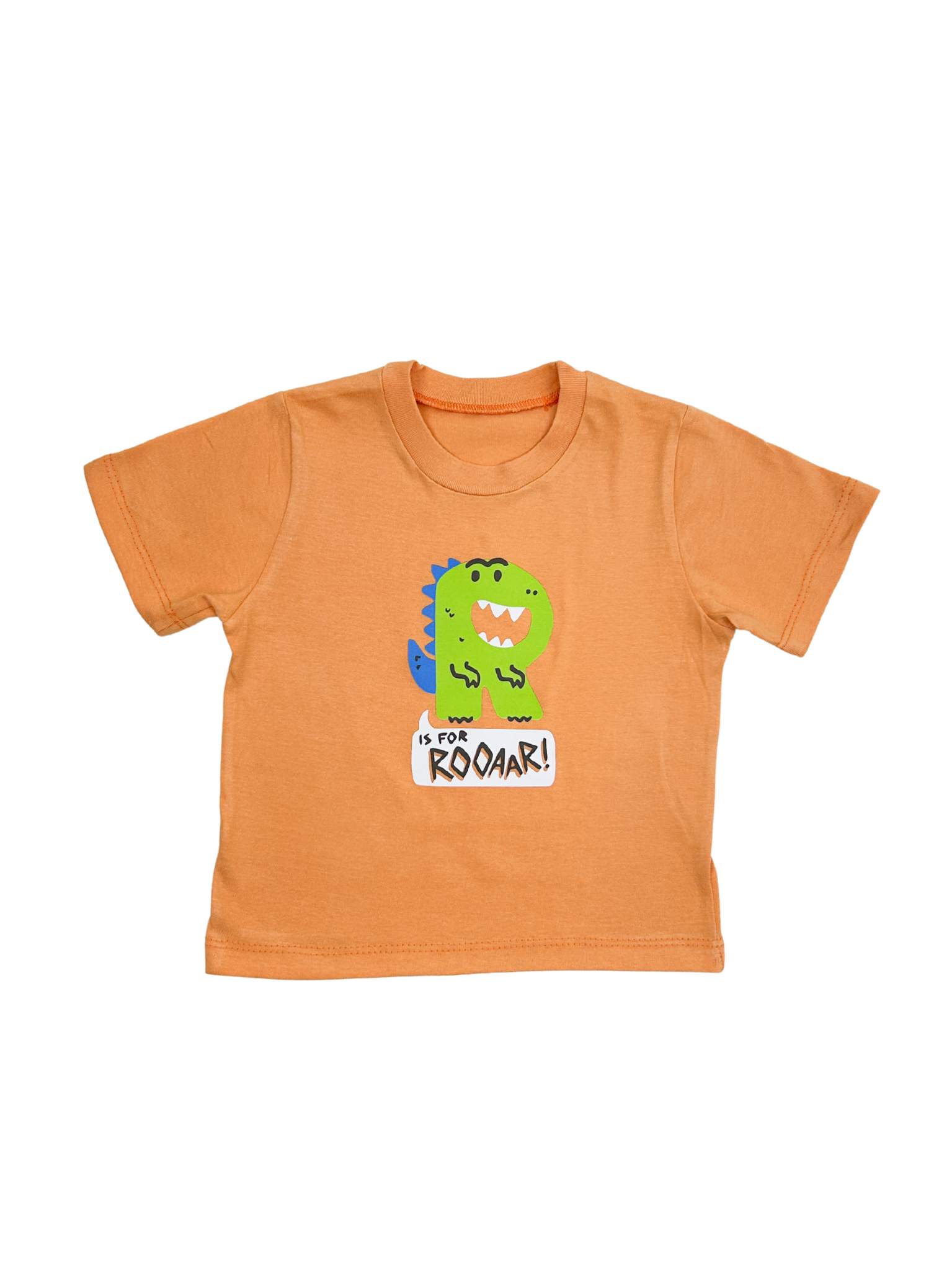 🌋 ¡Rugidos de diversión asegurados! Esta remera de algodón fresco y liviano es ideal para el día a día. Con un diseño divertido de un dinosaurio verde y la frase «IS FOR ROOAAR!», es la prenda perfecta para los peques con espíritu aventurero.