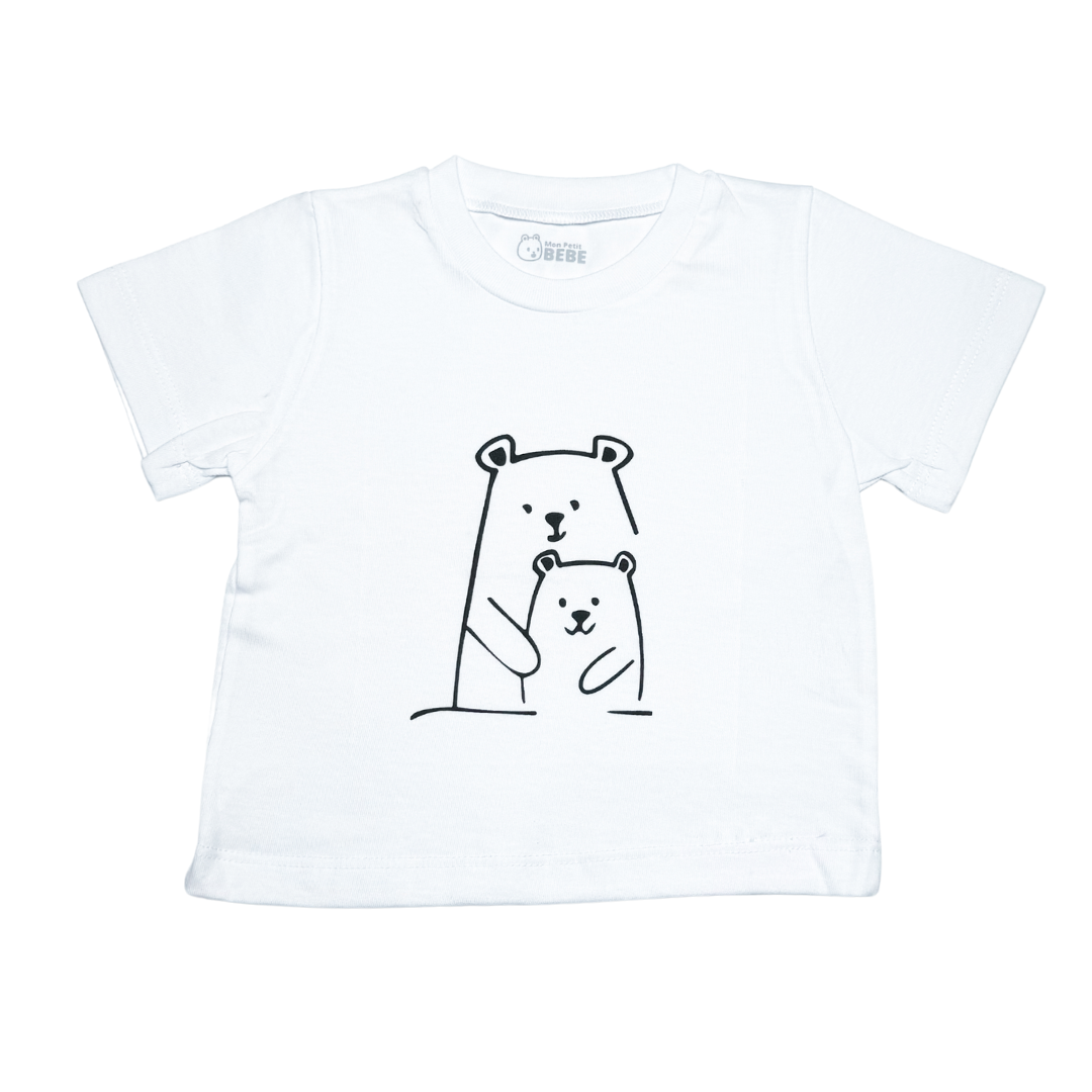 ¡Amor de familia en una prenda! 🐻 Esta remera muestra a una tierna pareja de ositos, ideal para transmitir calidez y dulzura en el look de tu bebé. Confeccionada en jersey suave, asegura comodidad en cada uso, perfecta para acompañar a tu peque en sus aventuras diarias.