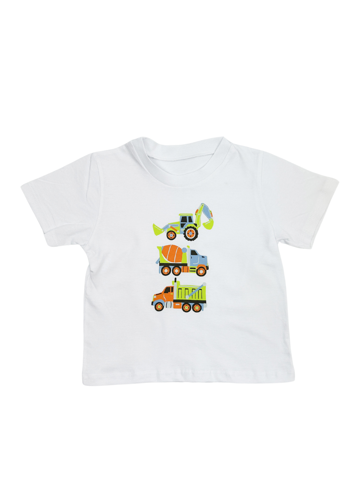 🚧 ¡Máquinas en acción para pequeños constructores! 🚜✨ Esta remera de algodón suave con un diseño de camiones y excavadoras es ideal para los peques que aman los vehículos y la construcción.